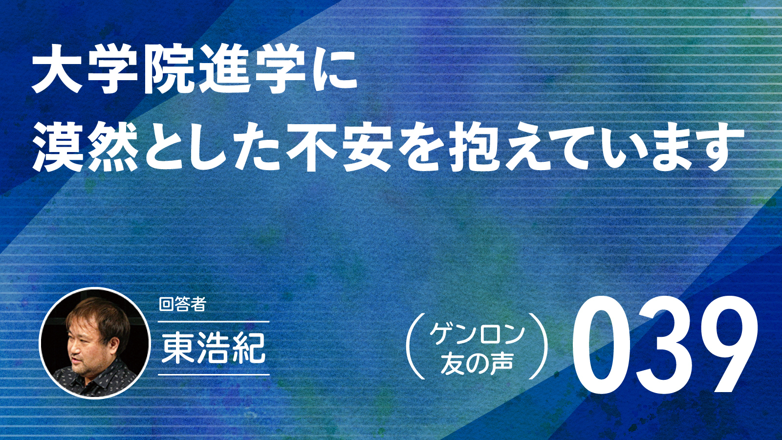 【 #ゲンロン友の声|039】大学院進学に漠然とした不安を抱えています