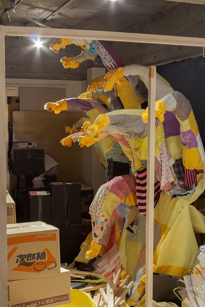 ファッションブランド「リトゥンアフターワーズ」のデザイナーである山縣良和さんをお呼びしたこの展示では、巨大な「山」がアトリエの中央に出現。FRP(繊維強化プラスチック)にたくさんの枝を装飾するかたちで造形されたこの巨大ジオラマともいえる立体作品は、自重によって会期中に日々姿を変えていきました。2017年11月に東京都庭園美術館で行われたファッションショー「After Wars」でも登場したこの山は、中に人が入って動かしていく「服」でもあり、山縣さんの過激ともいえるファッションの拡張性を表しているといえましょう。
