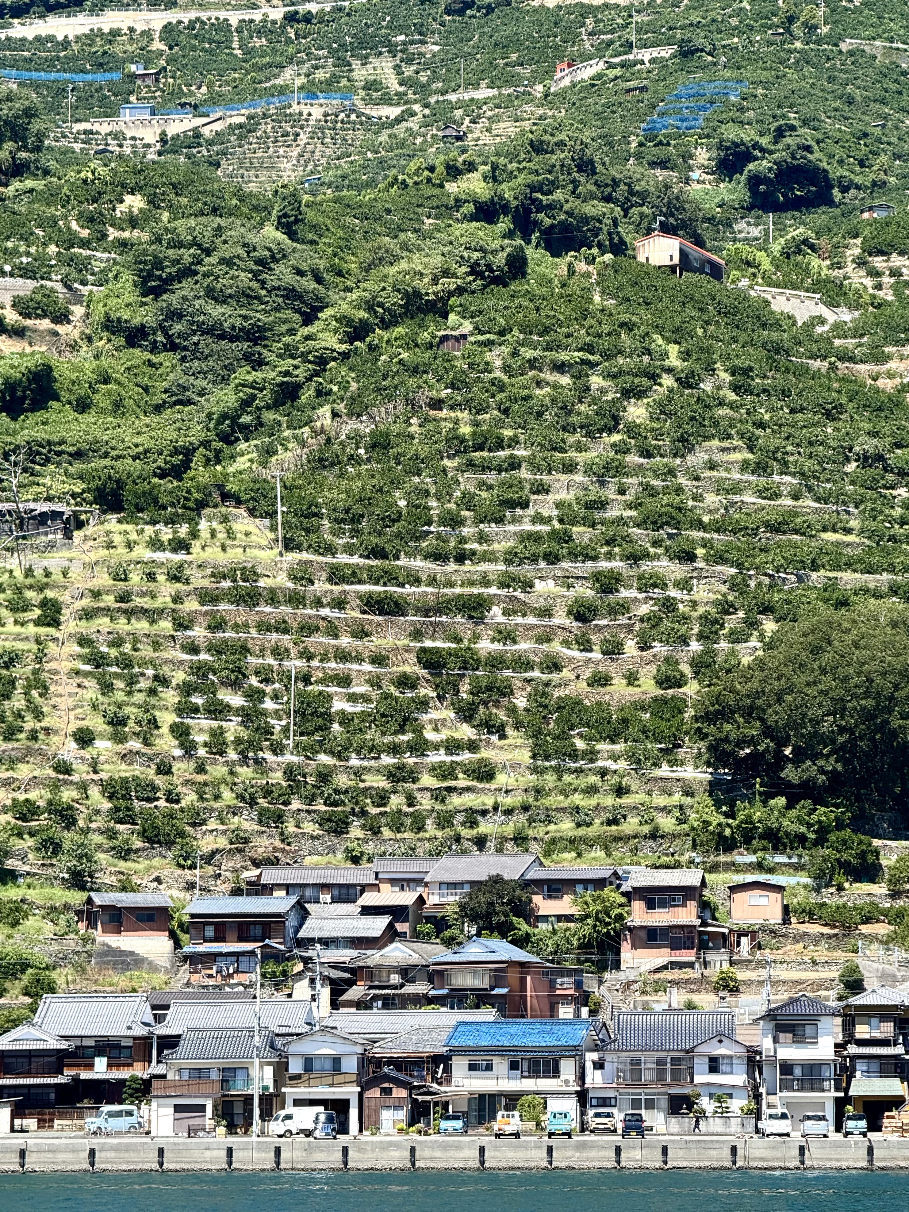 そして最後に、平野。四国のいちばんの特徴は、海と山の距離が近いことにあるんじゃないかと考えています。とくに瀬戸内海の島に行くと感じるのですが、フェリーで港に着くと、海沿いに家や商店が集まっており、すぐうしろの斜面に畑がひろがり、そのままぐっと山になる。一枚の写真に、海と集落と山が収まってしまう近接性こそ、瀬戸内海っぽさといえるのではないかと思います。これは海岸部にかぎった話ではなく、たとえば香川には讃岐平野という四国最大の平野が広がっているわけですが、その内陸部にいても、けっこう多くの場所から海が見えるんですよね。陸地にあっても海を意識してしまう感覚が、四国のとくに平野部にはあるのではないか。