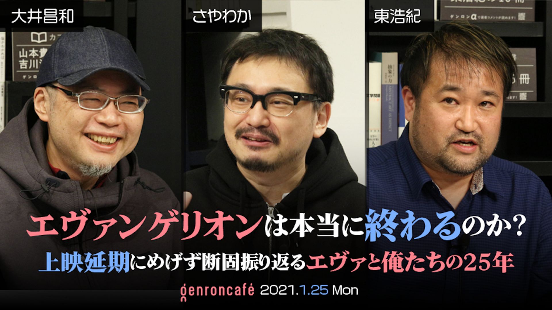 【2021/1/25収録】 大井昌和×さやわか×東浩紀 「エヴァンゲリオンは本当に終わるのか?──上映延期にめげず断固振り返るエヴァと俺たちの25年」 「エヴァンゲリオン」シリーズの25年を振り返る9時間の番組はこちら。 旧劇場版も、序破Qも…、これを観れば「エヴァ」のすべてがわかる!? 購入者特典の資料も充実。予習にも、復習にも!