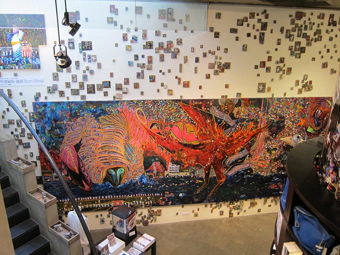 弓指 その話はいろいろ尾ひれがつきまくってるんです。母が亡くなったという話をしたときに、ふたりもショックを受けたみたいで、ぼくが「いまは鳥しか描けない」と言ったら、「大人な」ふたりが、励ましの意味をこめて「なんかしよう!」と言ってくれて。そこで弓塲さんが突然「グラフィティをやりたい」と言い出したんですね。ぼくは全然やりたくなかったけど(笑)。でも、落ち込んでいるぼくを救ってくれようとしてる感じがあったので、「ありがとうございます」って言って一緒にやることになった。Y戊个堂さんも、「俺が全部金を出す!」って言って乗ってくれて。