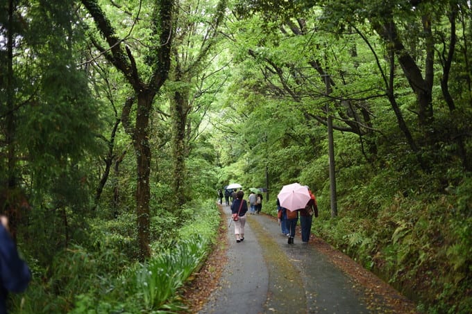 【図1】権現山の頂上に見えるアンテナ群が、ツアーの最初の目的地だ