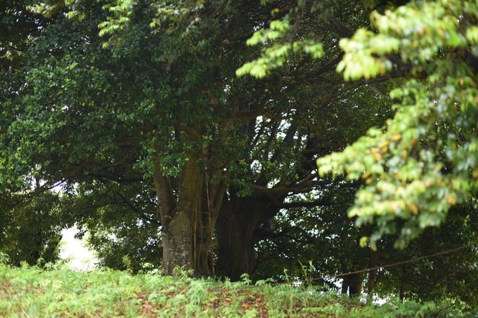 【図4】道路の両側が二基の古墳である。もともとは1つだったのかもしれない