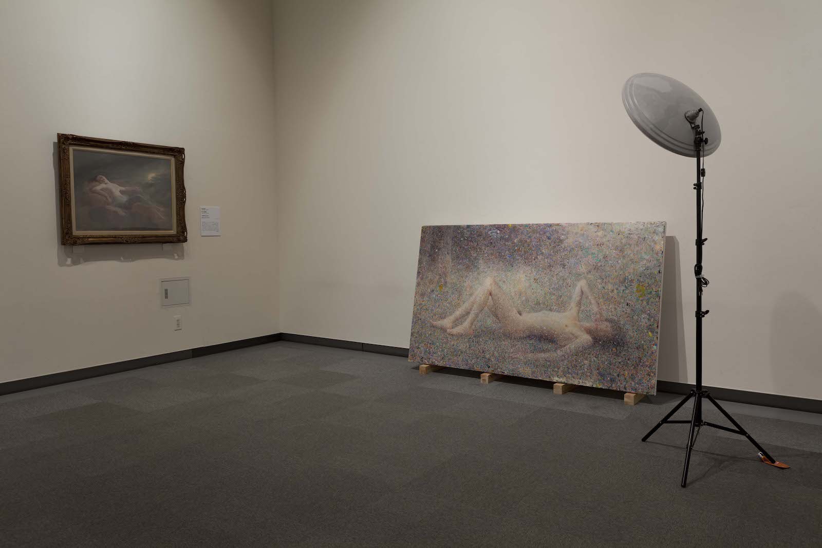 ★6 2017年、わたしは愛知県美術館で「未遂の花粉」という個展を開催し、自画像である全身裸像と、美術館がコレクションしている西洋画9点(山本芳翠《月下の裸婦》、麻生三郎《胴体と頭と電球》、高橋由一《厨房具》、上原欽二《ひまわり》、織田広喜《オペラ桟敷》、坂本繁二郎《海岸の家》、瑛九《黄色い花》、青木繁《太田の森》、鶴岡政男《夜》)を実際に同じ空間に配した。