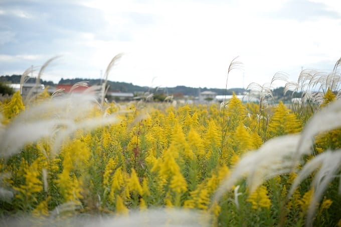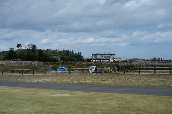 そんなことをモヤモヤと考えながら、伝承館の外に出た。そこには土があった。空があった。防潮堤の工事で奥は見えないが、視界の奥に海があるのだということは、気配からわかる。伝承館と、その隣にある産業交流センター以外に目立った建物はない。なんとなく、津波に壊されたと見える鉄骨の骨組みと、風に揺れるススキ、セイタカアワダチソウが目に入る。新しい区画と、手付かずの野っ原。その奇妙な組み合わせが、この地域の今を的確に表していた。
