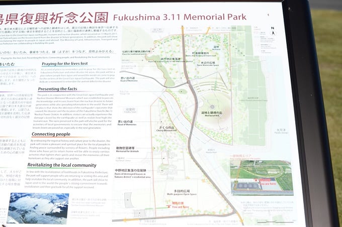 少し歩くと、パネルがあり、目の前の空間が「被災伝承復興祈念ゾーン」になると記されていた。スマホで検索してみると、目の前の地域が、両竹地区とか浜野地区と呼ばれていること、双葉海水浴場のそばに位置し、また、前田川という川沿いの地区ということもあり、地区のほとんどが浸水したこと、双葉町全体で21名の死者・行方不明者がいること、そのうち多くの方がこのエリアで亡くなっていたとわかった。ちなみに、震災直接死ではなく関連死は154名にのぼる。