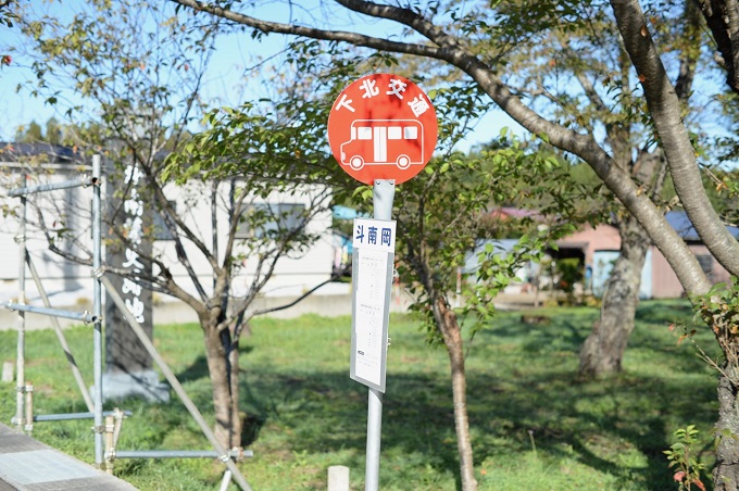 同じような感慨を、次に訪れた斗南ヶ丘の史跡でも抱いた。柴五郎の住居跡からさらに数キロ郊外の住宅地に、公園のように開けた場所があり、その中央に石碑が立っている。車を停め、そばに立っていたバス停を見てみると、やはり「斗南岡」とあった。斗南の名は、こうしてバス停に刻まれて日常の風景になっている。