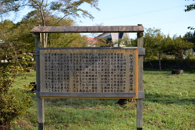 歩いて石碑に近づいてみる。「斗南開拓地」などと書かれているのかと思ったが、「秩父宮両殿下御成記念碑」と大書してあった。秩父宮雍仁といえば昭和天皇の弟にあたる皇族だ。いったい斗南とどのような関係があるのか。そう、秩父宮雍仁親王の妃であった勢津子は、あの会津藩主、松平容保の孫だったのだ(容保の六男、恆雄の長女)。パネルにはこうある。