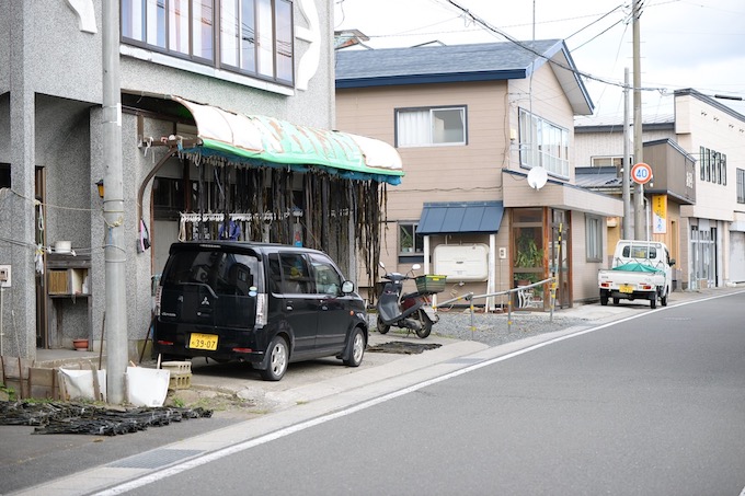 さらに地区の様子が知りたくなり、商店街へと入ってみた。こぢんまりとしていて、味のある店が多い。沿岸に出てみると、民家の軒先に昆布が干されている。浜辺では昆布を採る漁師にも遭遇した。泊地区の名産品なのだろう。調べてみると、昆布のほかにもスルメイカ、鮭が代表的な水産品のようだ。厳しい寒さと海流の冷たさ。だからこそ旨みを蓄える北の海の幸。泊は大変豊かな地区に思えた。次こそは、看板にもなっているスルメイカを食べてみたい。漁師たちの心意気を感じたいと思った。
