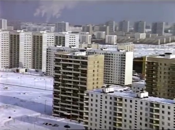 このようにブレジネフ時代には団地の多様化が進んだが、それでもその画一性は、西側メディアの反ソ・プロパガンダのみならず、ソ連国内メディアにおいてもしばしば風刺や批判の的にされた。なかでも住宅の規格化を物語のプロットにまで組み込んだのが、エリダール・リャザーノフ監督の映画『運命の皮肉、あるいはよい湯気を! Ирония судьбы, или С лёгким паром!』(1976年)である。