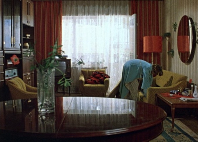 バラックやコムナルカのような共同住宅には個人的な空間はそもそも存在せず、フルシチョーフカの均質な空間に住人の属性が反映される余地はなかった。ブレジネフ時代に住宅のバリエーションが生まれたことによって、映画の中でも住宅はようやく単なる「住まい」という記号を超えて、このように登場人物の社会的立場や個性を可視化する装置となった。とりわけ『モスクワは涙を信じない』では、住宅は単に経済力の有無を示すだけでなく、登場人物の内面を外化し視覚化する装置としても機能しているのである。