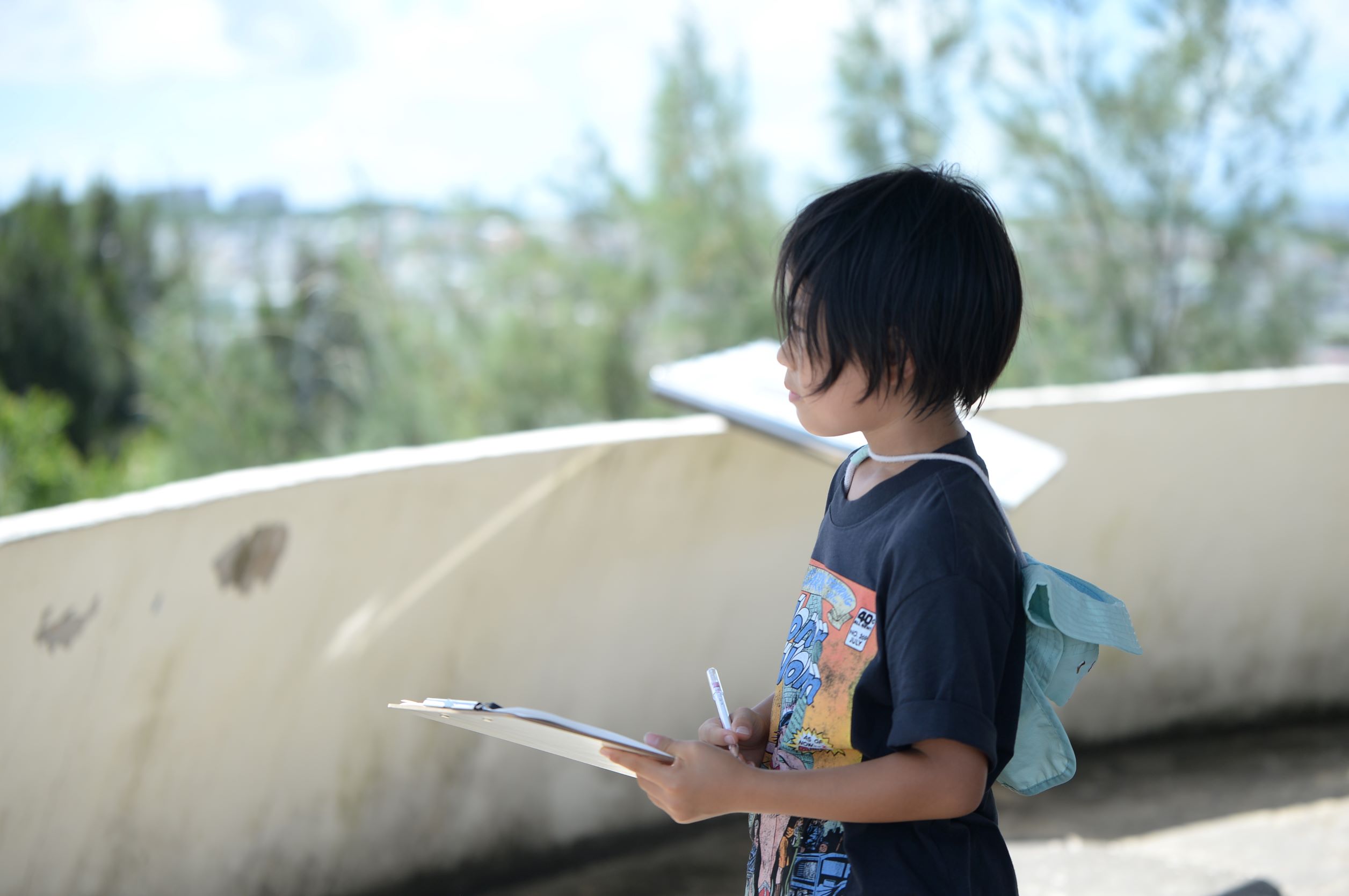 見聞きしたもの、感じたことをみんな書き残しておいて欲しいと思ってこんな取材メモを作ったのが、案外役にやっていたようだ。と同時に、娘はユマちんやシマさんに、「なんでアメリカの基地が沖縄にあるの?」「飛行機、うるさっ!」「落ちてきたら危なくないの?」と素朴な疑問をぶつけていた。どれも幼稚な反応かもしれないが、娘の感じる疑問はすべて正論にも聞こえた。シマさんもユマちんも、娘の質問に呆れることなく、丁寧に「そうだよなあ」「オレたちもそれで困ってんだよー」と、共感しながら相手をしてくれていた。