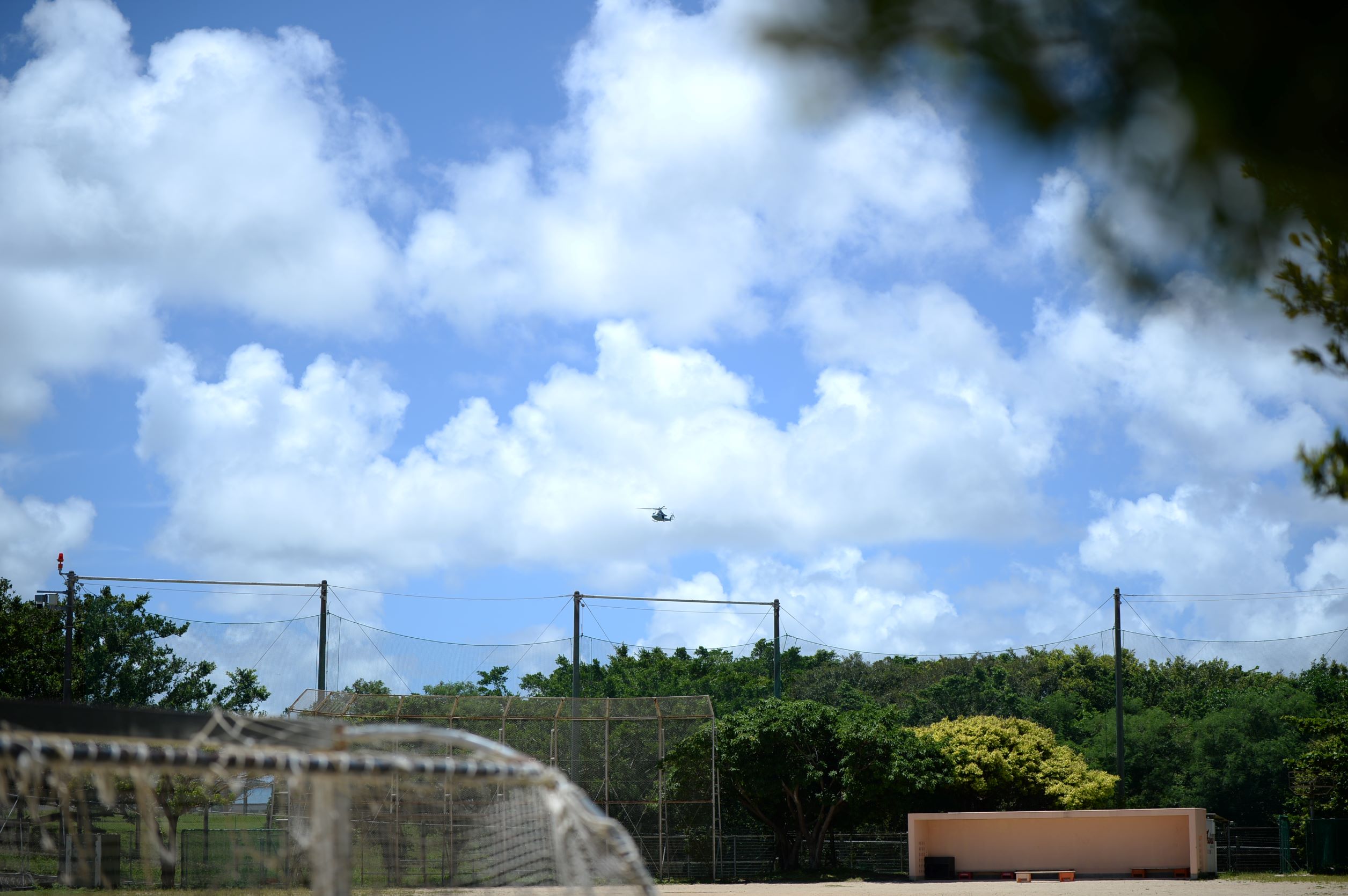 ユマちんが運転する車は、いつしか大通りから細い路地に入り、ある建物の近くの空き地で止まった。普天間バプテスト教会付属緑ヶ丘保育園。上空を飛行する米軍のヘリコプターから部品が落ちてきた保育園なんだとシマさんが教えてくれた。新聞記事などによると、2017年7月のある日の日中、「ドン」っという音を聞いた保育園の職員が外に出て確認すると、屋根の上に円筒状の落下物を見つけたのだという。米軍はあとになって、見つかったものが米軍のヘリコプターの一部であると認めたものの、飛行中の機体から落下した可能性は低いと説明したという。このため、幼稚園には、ウソつきだ、でっち上げだろうという誹謗中傷も寄せられたそうだ。