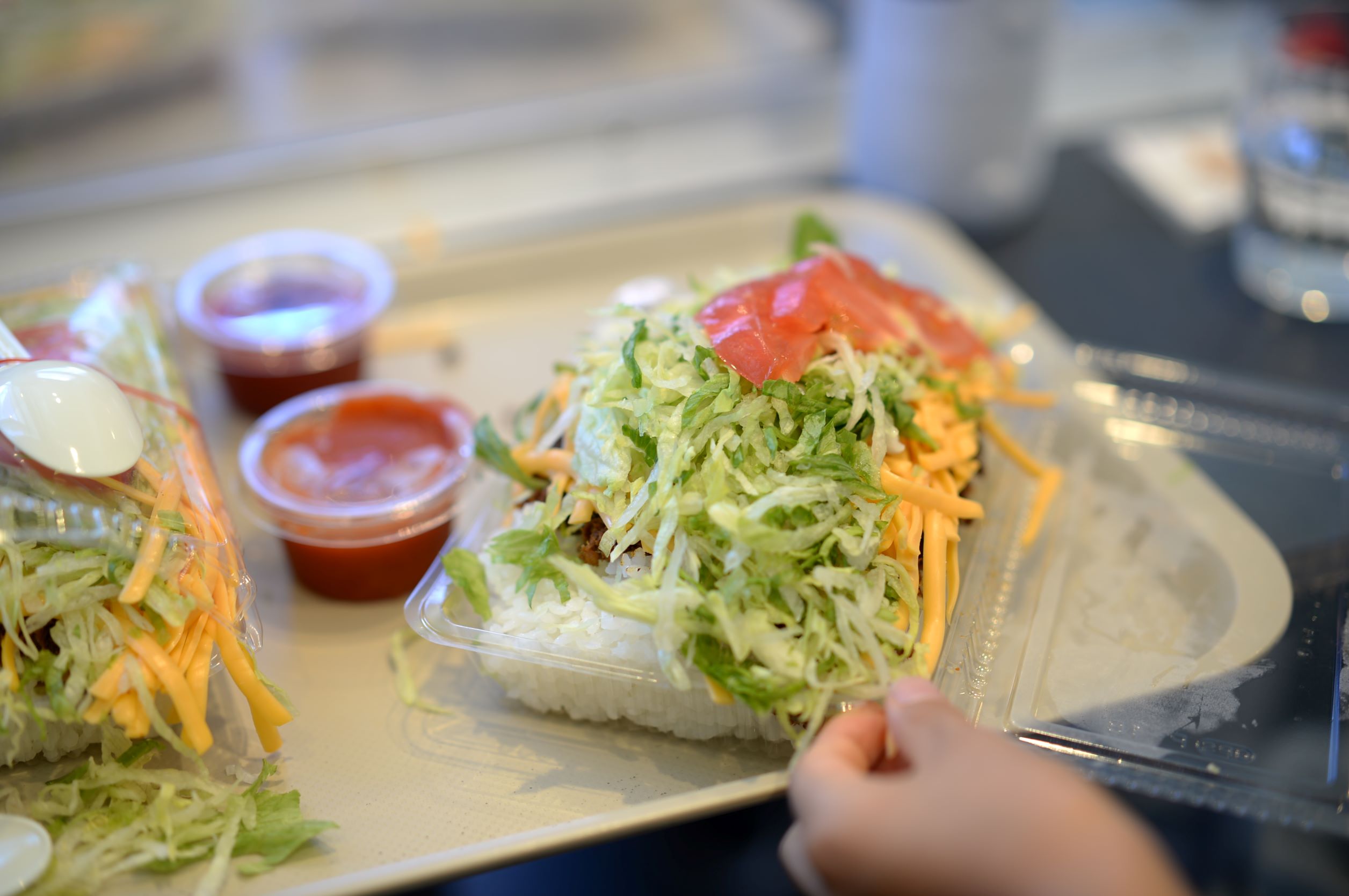 そうこうしていると、車は金武町にあるキングタコスに着いた。真夏にあちこちを歩いて見て回っていたぼくは死ぬほど腹が減っていたが、空腹を耐え忍んで行列に並び、600円の「タコライス・チーズ野菜」を注文する。数分して、皿ではなく、テイクアウトによく使われる透明なプラスチック容器にぶち込まれたタコライスがきた。かなりの量のライス、タコミート、レタスとチーズがぎっしり詰め込まれていて、ぐうとお腹が鳴る。カフェめしのようなオシャレ感はまるでない。「とにかくまあ食ってけ」と言わんばかりのボリュームである。午前中ずっと汗をかいて喉がカラカラだというのに、タコライスを見ると生唾が出てくる。自分の卑しさに苦笑いしつつ、2階のイートインコーナーに陣取り、ぼくたちは無言でタコライスを食べ始めた。