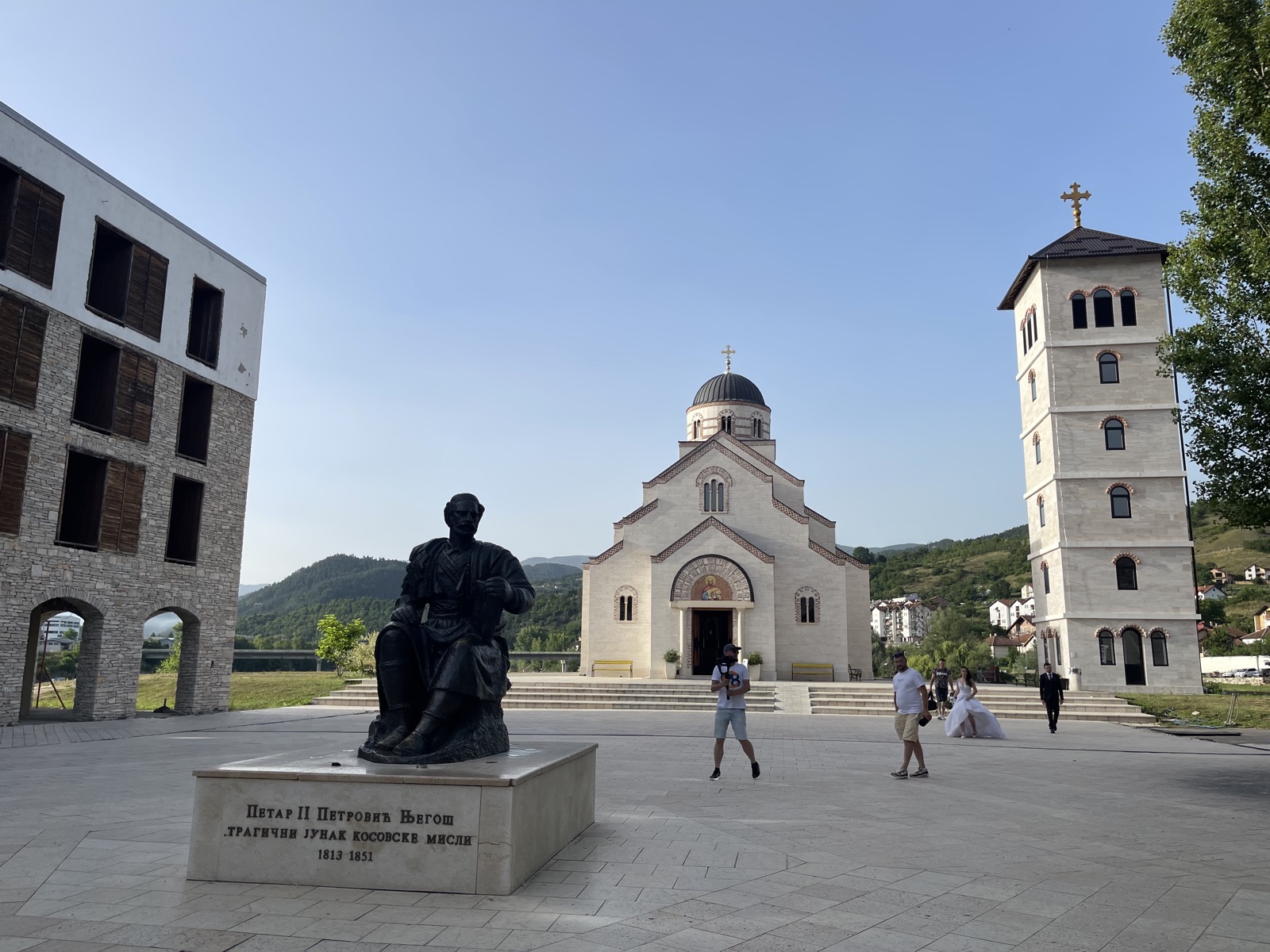 アンドリッチグラードはクステンドルフほどにはキッチュな印象を与えない。教会も街並みも規模が大きく、必要な時代考証もされていると感じる[図4]。市民にも愛されている。ぼくたちが訪れたときには、新婚衣装に身を包んだカップルが記念撮影をしていた。もともとが映画のセットなので、確かにその手の撮影には適している。そしてなによりも大事なことに、チェ・ゲバラやテレシコワのような意図不明な人物の壁画がない。銅像は建てられているが、みな調べると名のある政治家や文学者ばかりだ。