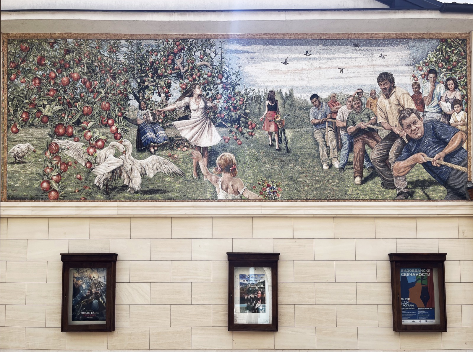 ★12 妄想めいた読解を許してもらえれば、アンドリッチグラードのモザイク画に描かれたクストリッツァたちが引き寄せているのは、この映画で流された草原なのかもしれない。『アンダーグラウンド』でいちど葬送されたユーゴスラヴィアの統一の夢を、いまのクストリッツァは、セルビア系政治家たちとともに復活させようとしている。