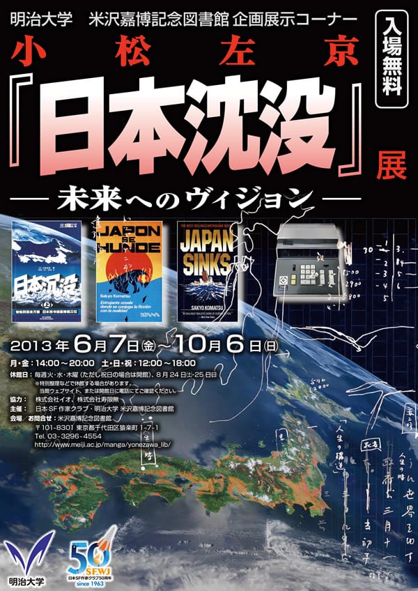 かつて日本中に衝撃を与えたベストセラー小説『日本沈没』から40年が経った2013年9月21日、東京・明治大学で小松左京と日本のSFを語るトークイベントが行われた。小松作品に新たな光をあてるのは、新城カズマ(作家)と東浩紀(作家・批評家)。筋金入りの小松ファンである二人が、作品の新解釈から美少女アニメまで、縦横無尽に語り尽くす。小松左京が見ていた未来と二人の作家が描く未来は、どのように交錯するのだろうか。(編集部)