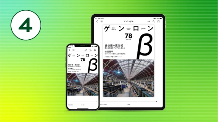 友の会会員のみなさまには隔月で第3金曜日にメールで配信をお知らせします。刊行済みの『ゲンロンβ』は「ゲンロンショップ」サイトの「マイページ」からePUB版をダウンロードいただけます。